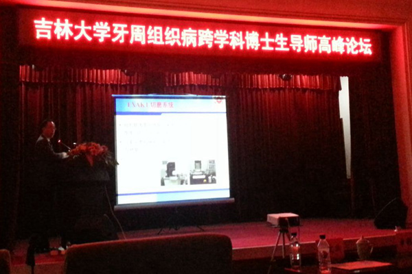 ? ? ? ?2012年12月22日,我公司應(yīng)邀參加了吉林大學(xué)口腔醫(yī)學(xué)院舉辦的“牙周組織病跨學(xué)科博士生導(dǎo)師高峰論壇”。會(huì)議邀請(qǐng)了首都醫(yī)科大學(xué)王松靈教授、南方醫(yī)科大學(xué)章錦才教授、北京大學(xué)孟煥新教授、武漢大學(xué)李成章教授、山東大學(xué)楊丕山教授、中國(guó)醫(yī)科大學(xué)潘亞萍教授、哈爾濱醫(yī)科大學(xué)畢良佳教授、中國(guó)人民解放軍總醫(yī)院王東勝主任技師、吉林大學(xué)于永利教授、周慧教授、周延民教授、孫宏晨院長(zhǎng)等國(guó)內(nèi)著名專家。