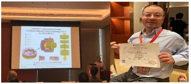 同時,北京共贏聯(lián)盟國際科技有限公司-LUM中國總經(jīng)理-鄧世寧(博士)受邀作為特聘專家給與會的同仁做了精彩的學術(shù)報告,介紹了LUM新穎的CATT (Centrifugal Adhension Testing Technology) - 離心式粘結(jié)力測試技術(shù)。在材料測試方面,LUM CATT -Centrifugal Adhesion Testing Technology離心式粘附力檢測技術(shù),可綜合測定復合材料的粘結(jié)強度和內(nèi)聚強度。