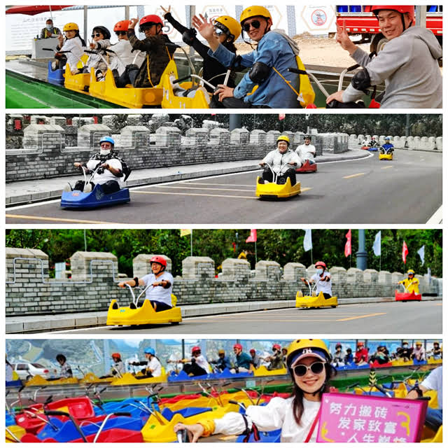 另外,公司也特意安排了員工們到梨樹(shù)溝體驗(yàn)網(wǎng)紅山地滑車。這是個(gè)讓人心跳加速的游玩體驗(yàn),梨樹(shù)溝的活動(dòng)場(chǎng)地全長(zhǎng)3公里,有4個(gè)發(fā)卡彎道,4個(gè)極速?zèng)_坡,全程刺激到爆。