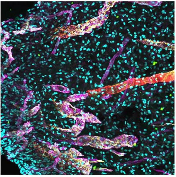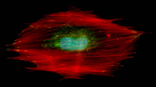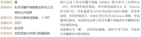 這些作品幾乎均為創(chuàng)作者在日??蒲泄ぷ髦幸圆煌募夹g(shù)手段捕捉到的微觀生命瞬間,科學(xué)的“透鏡”似乎為我們展現(xiàn)出一幅幅藝術(shù)的“魔幻”,一邊是細胞、分子層面的微觀抵達,另一邊好似一塊既陌生又熟悉的“優(yōu)詩美地”。這里,本是科學(xué)嚴謹?shù)念I(lǐng)地,因為其關(guān)乎生靈,便開啟人們自由逸放的審美思緒。在此,我們驚嘆中國古代哲學(xué)體系中“天人合一、道法自然”的天道規(guī)律。原來早于現(xiàn)代科學(xué),這種“盡精微而致廣大”的宇宙觀便已根植于我們生存的大地。感謝各位作者以他們現(xiàn)代技術(shù)的視野,為我們定格生命律動的瞬間,張揚蓬勃的藝術(shù)活力。換一個視角,生命的風景便呈現(xiàn)“天地人”的和諧和統(tǒng)一,換一種思路,生命的哲學(xué)便更能詮釋苦難與幸福的非凡境遇。