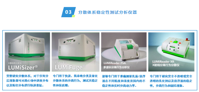 10.可檢測分析:①膠體穩(wěn)定性;②粒徑分布;③沉降/上?。虎艹吻逅俾?;⑤預(yù)測產(chǎn)品保存期;⑥觀察絮凝/團(tuán)聚現(xiàn)象;⑦沉降層/懸浮層厚度及緊密程度;⑧研究膠體結(jié)晶化等。已經(jīng)具有膠粘劑穩(wěn)定性分析和力度表征、快速評(píng)估新型納米碳材料作為潤滑油添加劑的可能性、快速評(píng)估碳纖維施膠劑分散體的穩(wěn)定性等眾多方面的應(yīng)用案例。