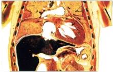 在生物塑化切片的制作中,將硬化處理過(guò)的標(biāo)本與塑化劑固化為一體,將其固定于金剛石帶鋸上,可分別按水平面和冠狀面以無(wú)齒金剛石帶鋸切割。切割方式為點(diǎn)接觸帶式切割,最大橫切面為∮180mm,塑化薄層切片的厚度約為0.2-0.3mm,鋸耗率為0.2~0.3mm,切割弧形擺幅±7°—±28°。斷面標(biāo)本為半透明狀,水平切片和冠狀切片對(duì)骨質(zhì)、肌肉、血管、神經(jīng)顯示均較為清楚,顏色基本無(wú)失真,可觀察組織在斷面上的形態(tài)、位置、大小、毗鄰及走行。組織塑化后,鋸切時(shí)不變形,無(wú)移位、脫落,切面干凈、光滑、平整,組織清楚,置于顯微鏡下還可以觀察放大的組織結(jié)構(gòu)??呻S意保存、攜帶、演示。